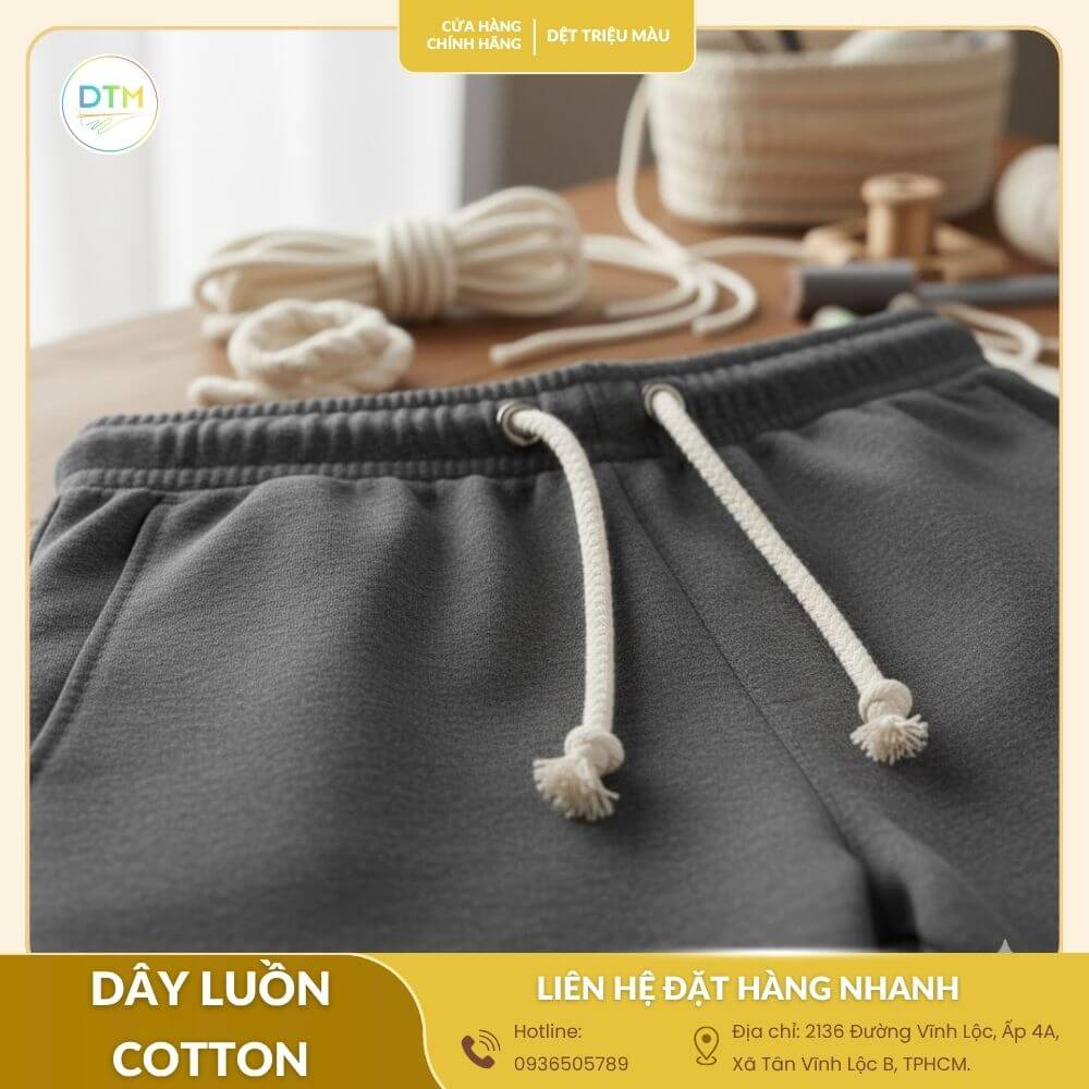 Đặc biệt, dây cotton luồn áo còn an toàn cho làn da nhạy cảm, phù hợp cả trẻ nhỏ. Theo thống kê năm 2025, hơn 60% sản phẩm quần áo cao cấp tại Việt Nam sử dụng dây rút cotton để tăng tính thân thiện môi trường.
