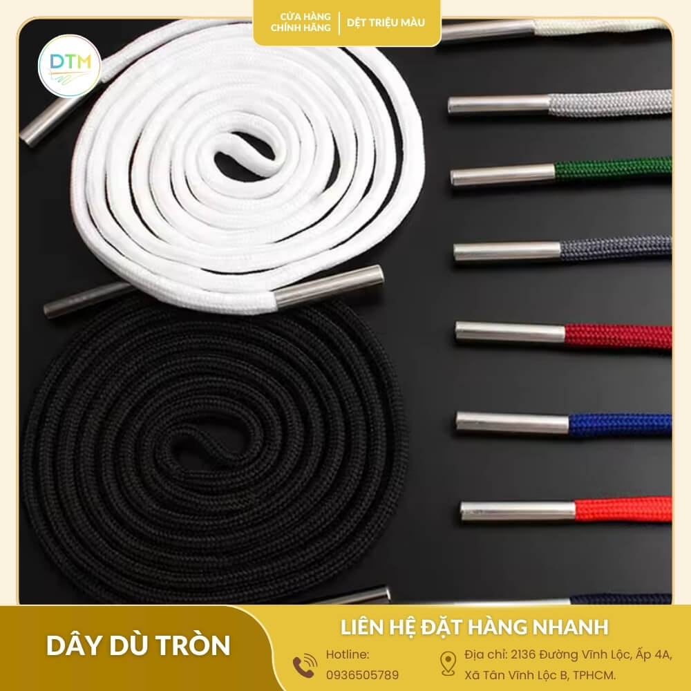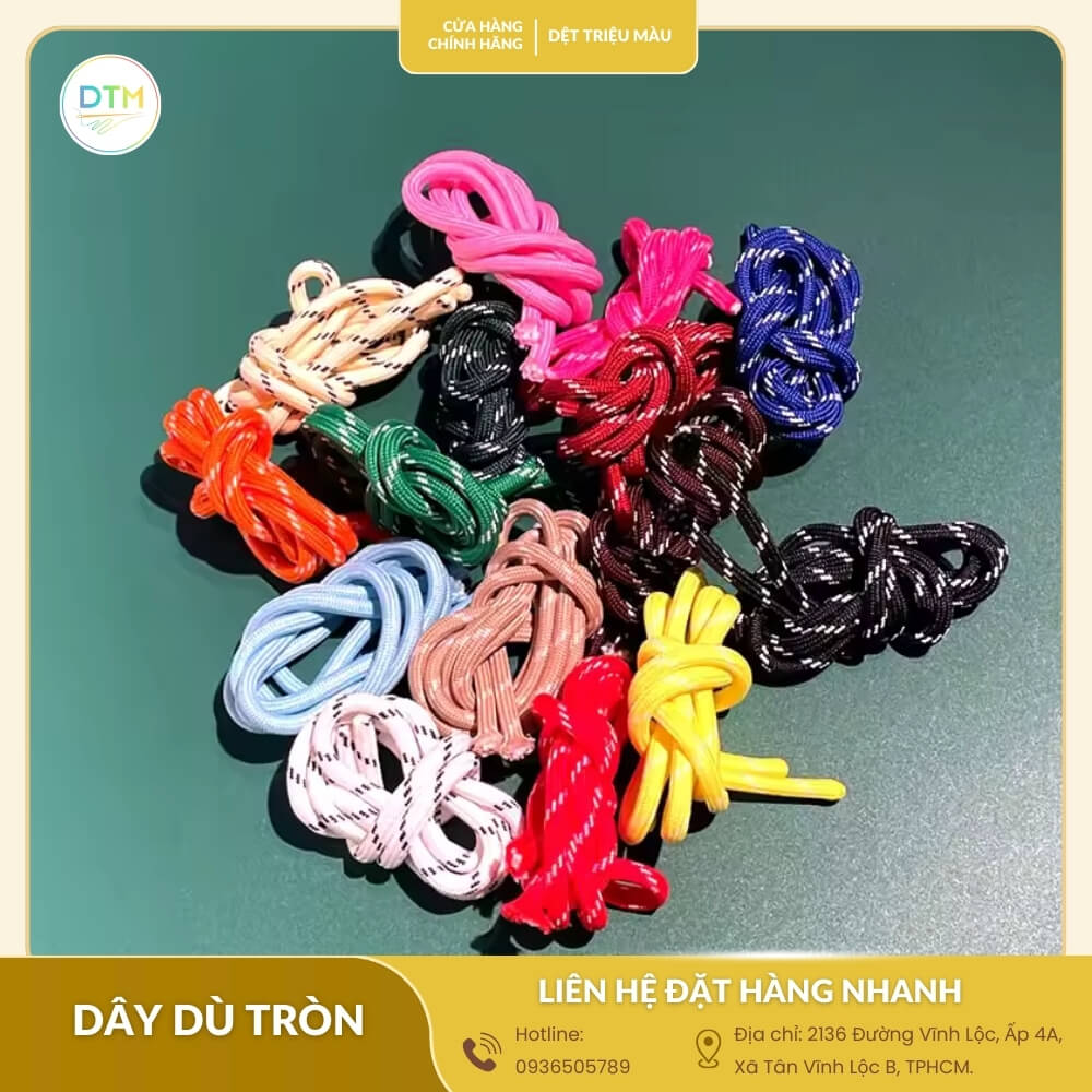 Nếu bạn đang tìm địa chỉ cung cấp dây dù tròn tốt, giá sỉ tận xưởng, Dệt Triệu Màu là một trong những đơn vị uy tín. Tham khảo thêm mẫu mã và chính sách bán hàng tại dây luồn quần áo bền đẹp giá tận xưởng