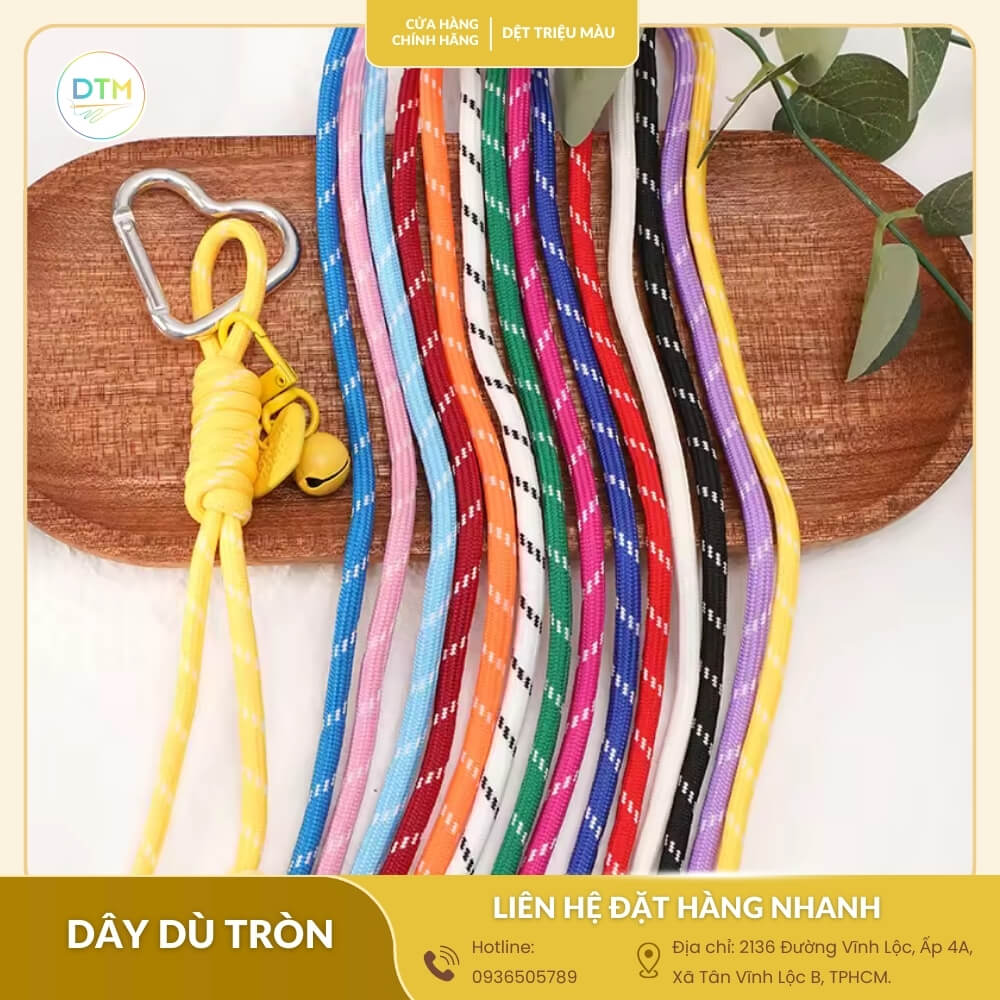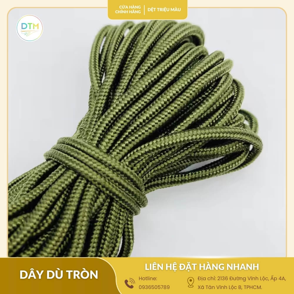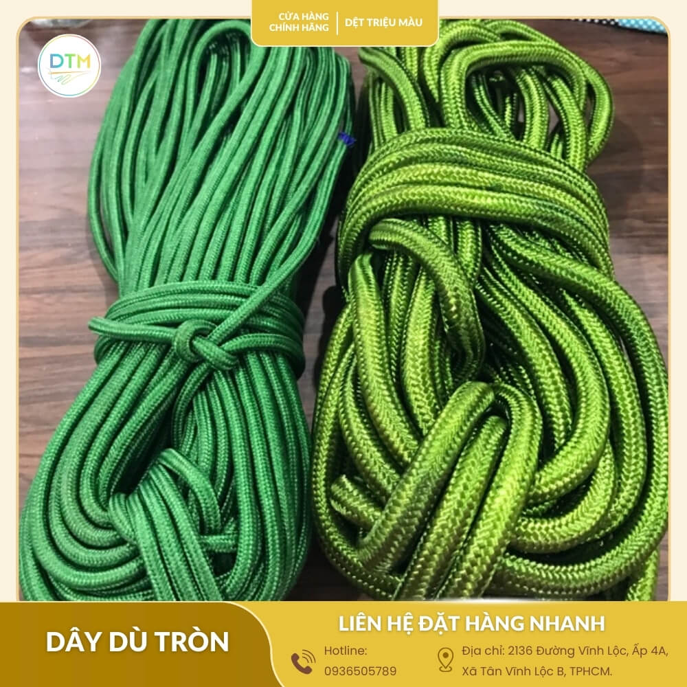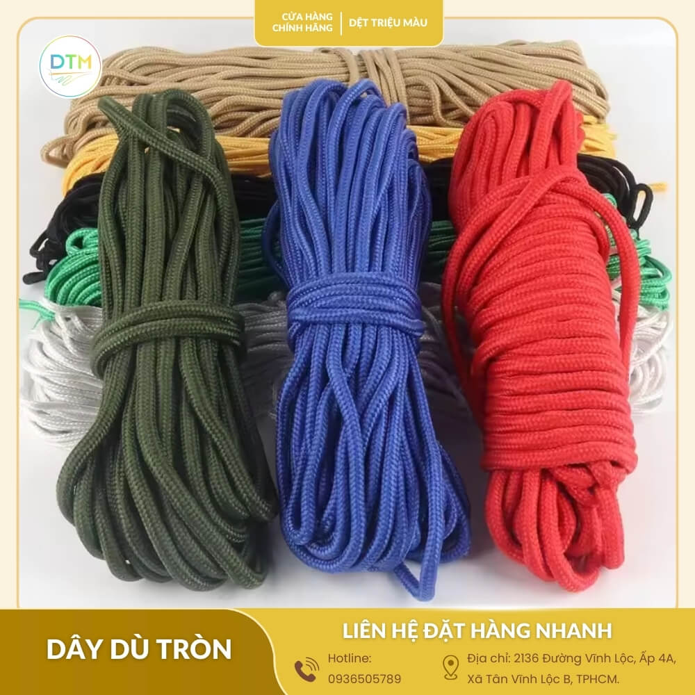 Với nhiều năm kinh nghiệm trong lĩnh vực sản xuất và cung cấp các loại dây dệt, Dệt triệu màutự hào là địa chỉ cung cấp dây dù tròn loại tốt giá tận xưởng tại TPHCM và trên toàn quốc. Chúng tôi là xưởng sản xuất trực tiếp, không qua trung gian, mang đến cho bạn những sản phẩm chất lượng với mức giá cạnh tranh nhất.