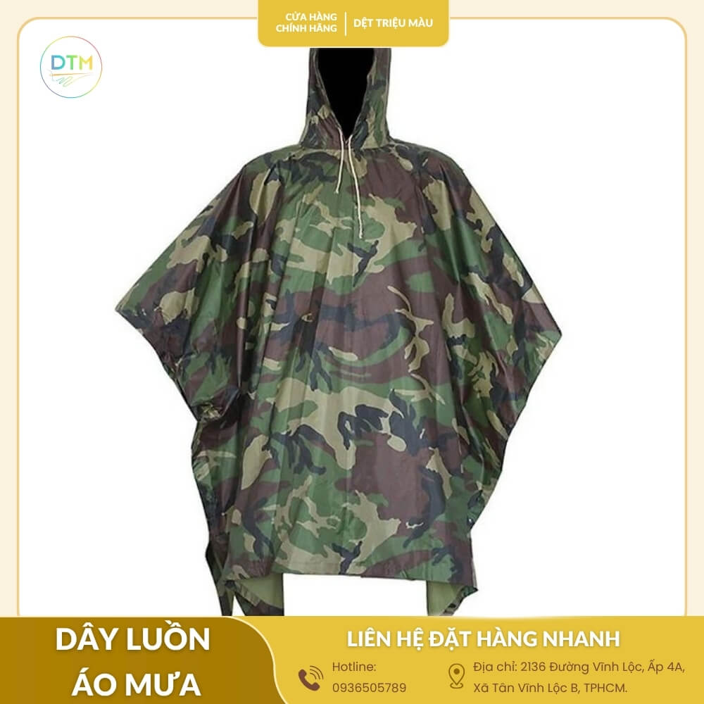 Với dòng áo mưa cao cấp, dây thường được làm từ sợi tổng hợp polyester có độ bền và khả năng chống thấm vượt trội, giúp sản phẩm sử dụng lâu dài mà vẫn giữ được vẻ đẹp ban đầu.