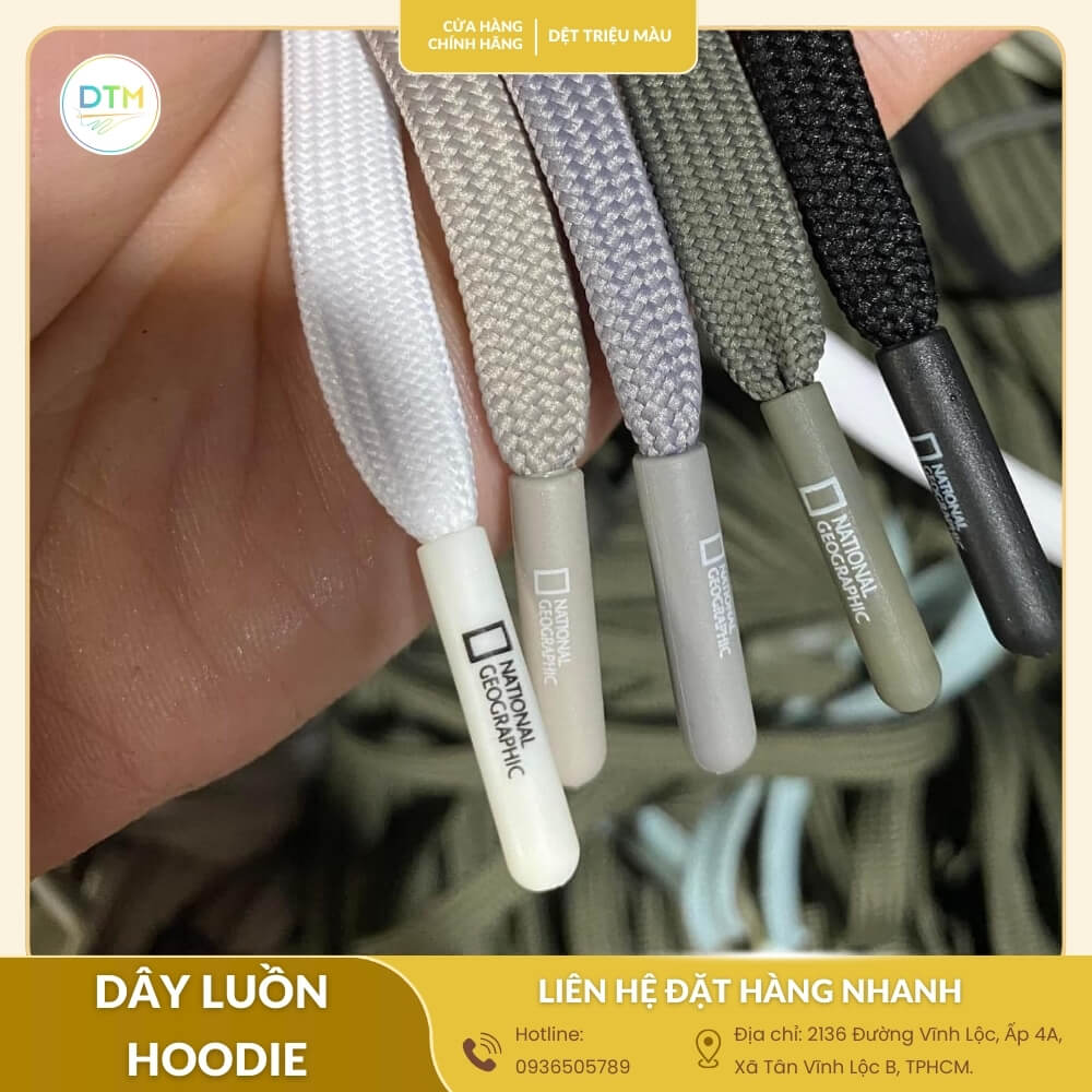 Dây luồn hoodie giá sỉ đang được nhiều xưởng may lựa chọn nhờ độ bền cao và bảng màu đa dạng. Sản phẩm sản xuất tận xưởng, đảm bảo chất lượng ổn định cho từng đơn hàng. Bạn đang tìm nguồn cung cấp uy tín, giá hợp lý? Liên hệ ngay để được tư vấn và báo giá chi tiết.