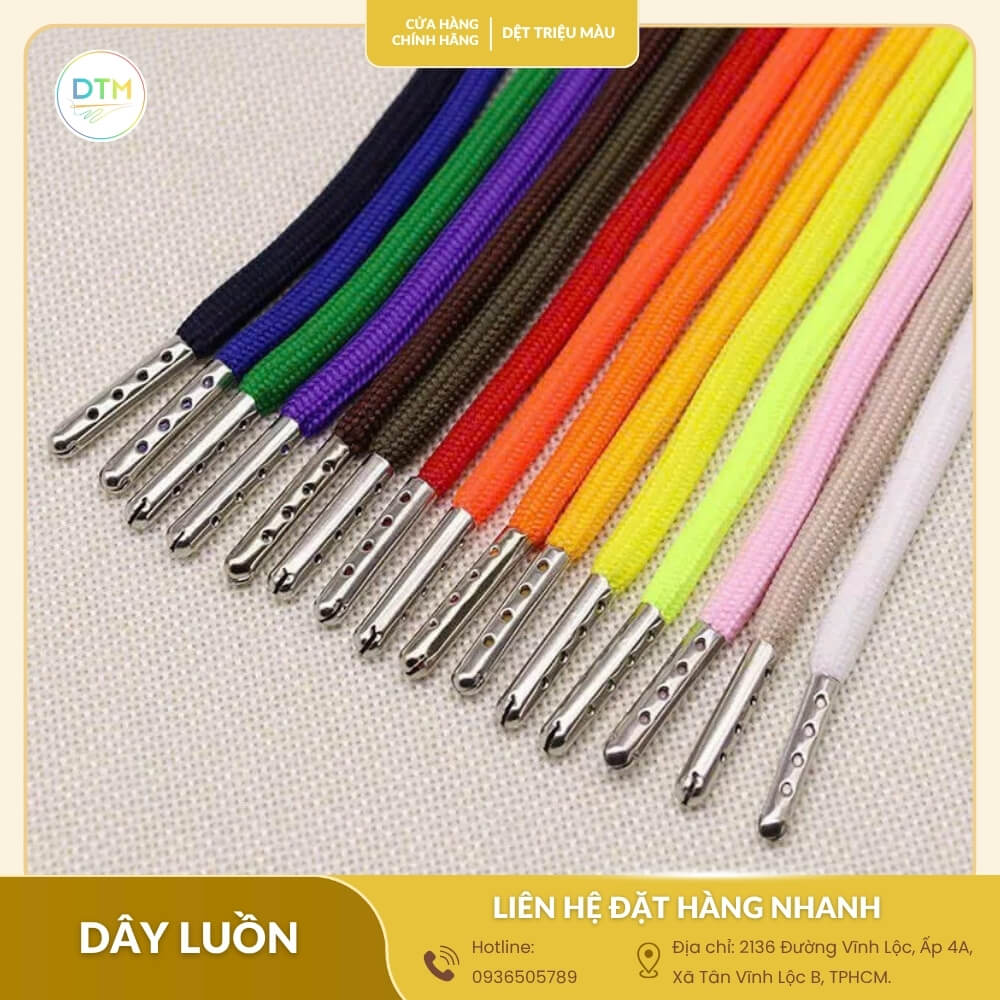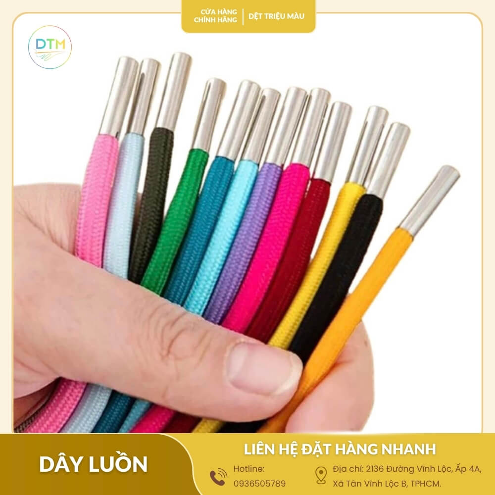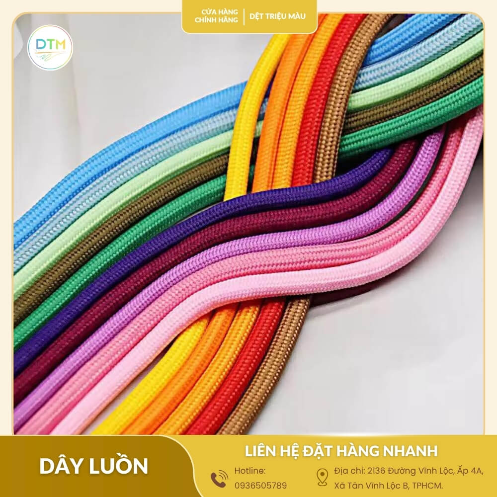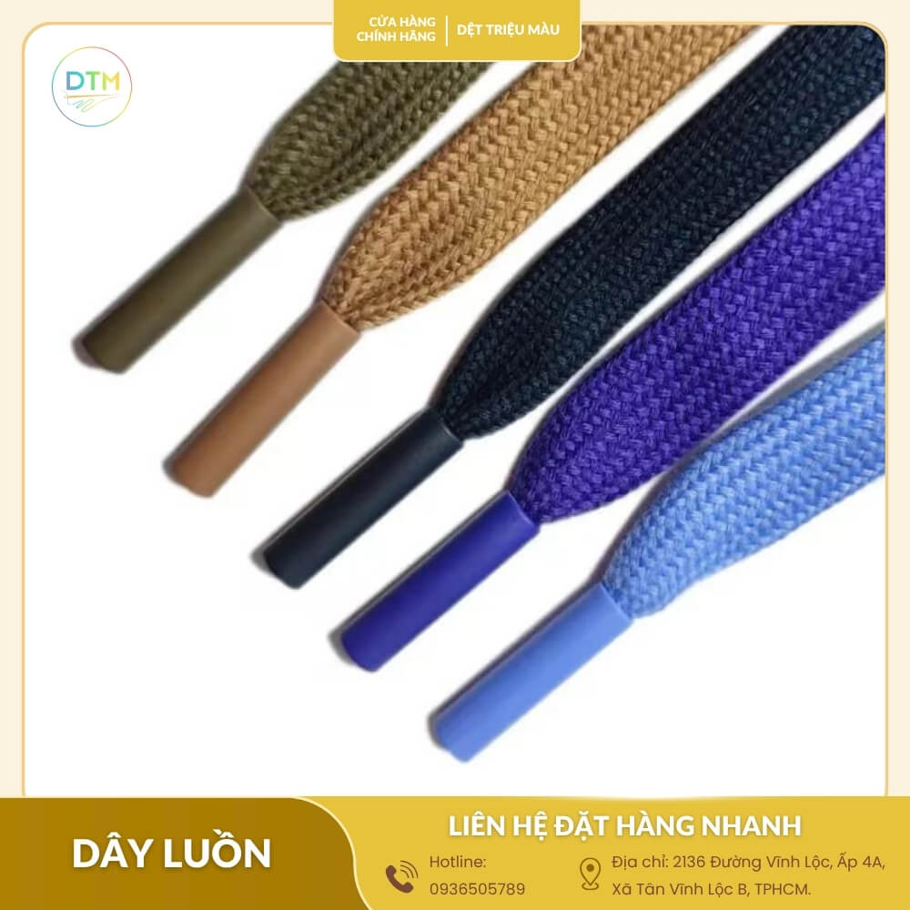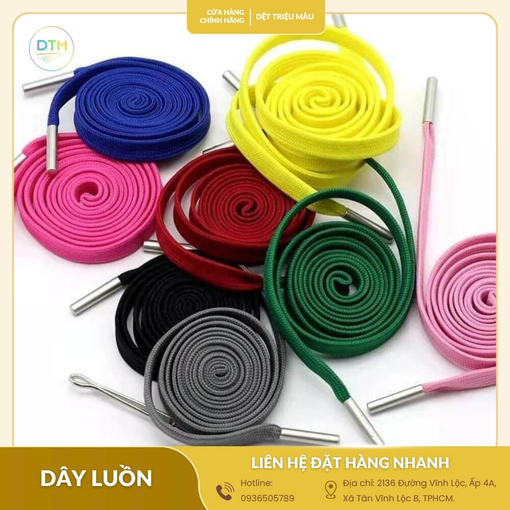 Dệt Triệu Màu – xưởng sản xuất dây luồn giá sỉ tận gốc, đã và đang cung cấp nhiều dòng dây polyester đa dạng phục vụ cho may mặc, giày dép, túi xách, balo, áo hoodie và nhiều sản phẩm thủ công khác.