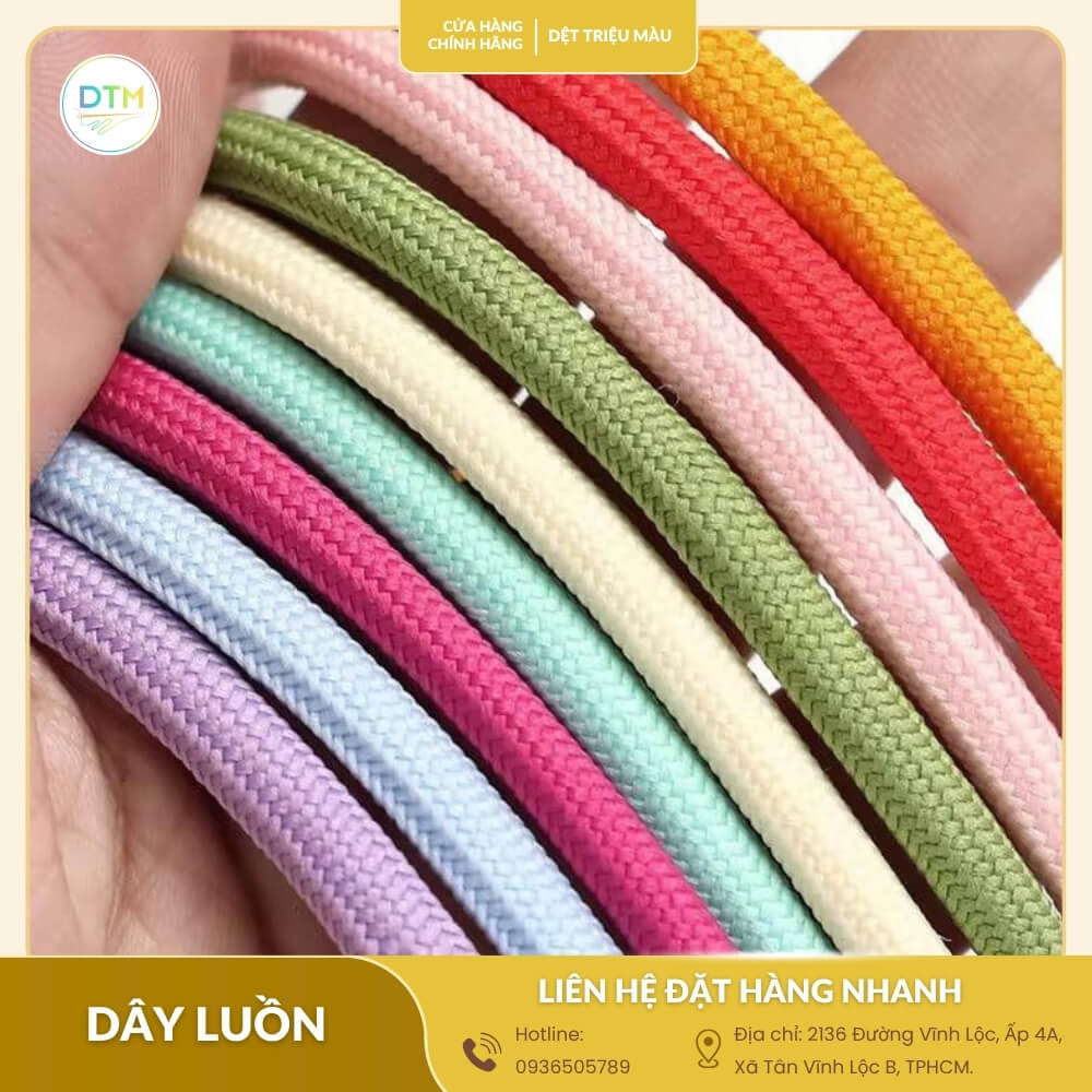 Kích thước, đường kính và kiểu dệt phù hợp: Tùy vào loại sản phẩm, bạn có thể chọn dây tròn, dẹt hoặc tết. Dệt Triệu Màu có sẵn nhiều quy cách từ 3mm đến 10mm phục vụ đa dạng nhu cầu.