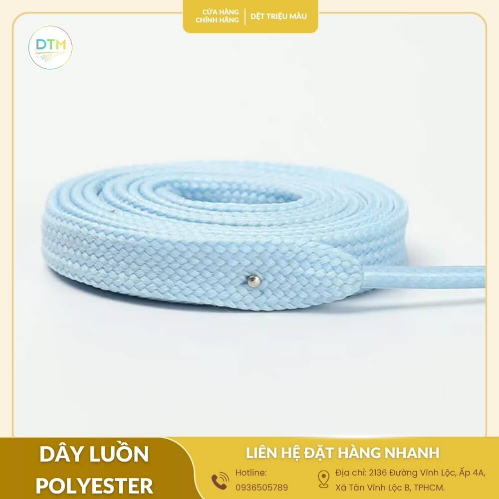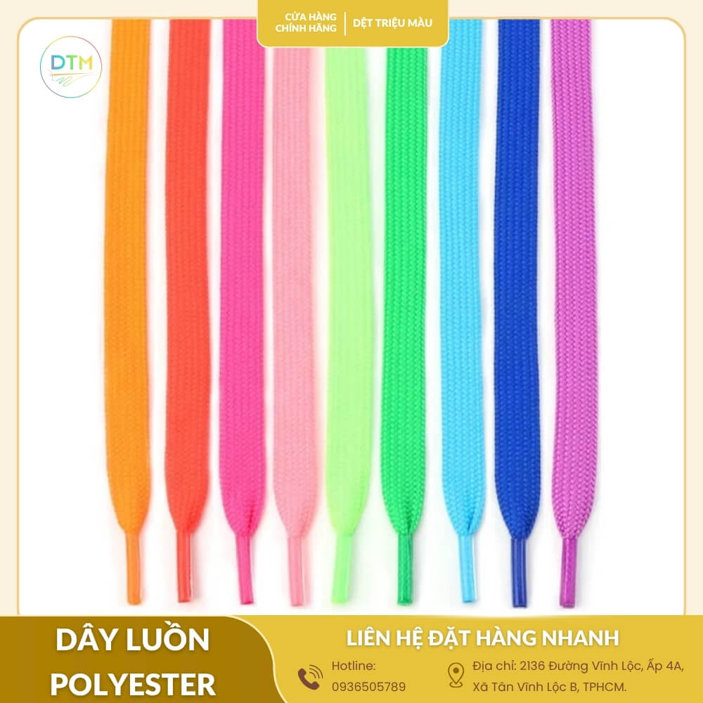 Công nghệ dệt kim và dệt thoi tiên tiến cho phép sản xuất dây polyester với hàng trăm mã màu theo bảng Pantone quốc tế. Dây giữ màu bền nhờ quy trình nhuộm ở nhiệt độ cao, giúp thuốc nhuộm bám sâu vào sợi. Dù giặt nhiều lần, dây vẫn không bị bạc màu hay loang màu. Bề mặt dây mịn, không sần, phù hợp cho sản phẩm yêu cầu cao về thẩm mỹ như áo khoác thời trang hoặc dây túi xách cao cấp.