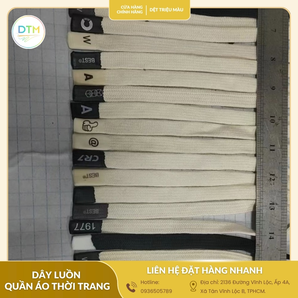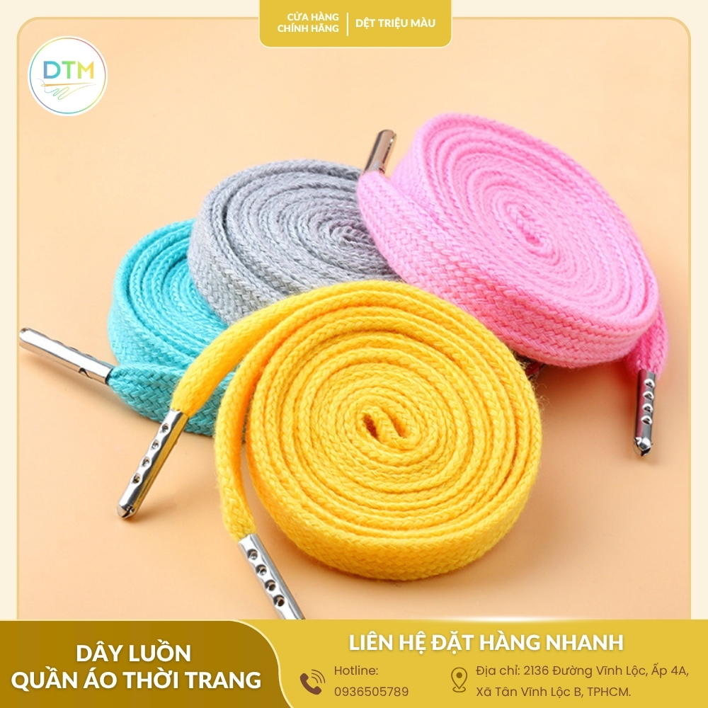 Nếu bạn đang tìm kiếm dây luồn quần áo chất lượng cao, mẫu mã đa dạng và giá tận xưởng, hãy lựa chọn Công Ty TNHH SX & TMDV Dệt Triệu Màu – địa chỉ uy tín hàng đầu được nhiều xưởng may và cửa hàng thời trang tin dùng.
