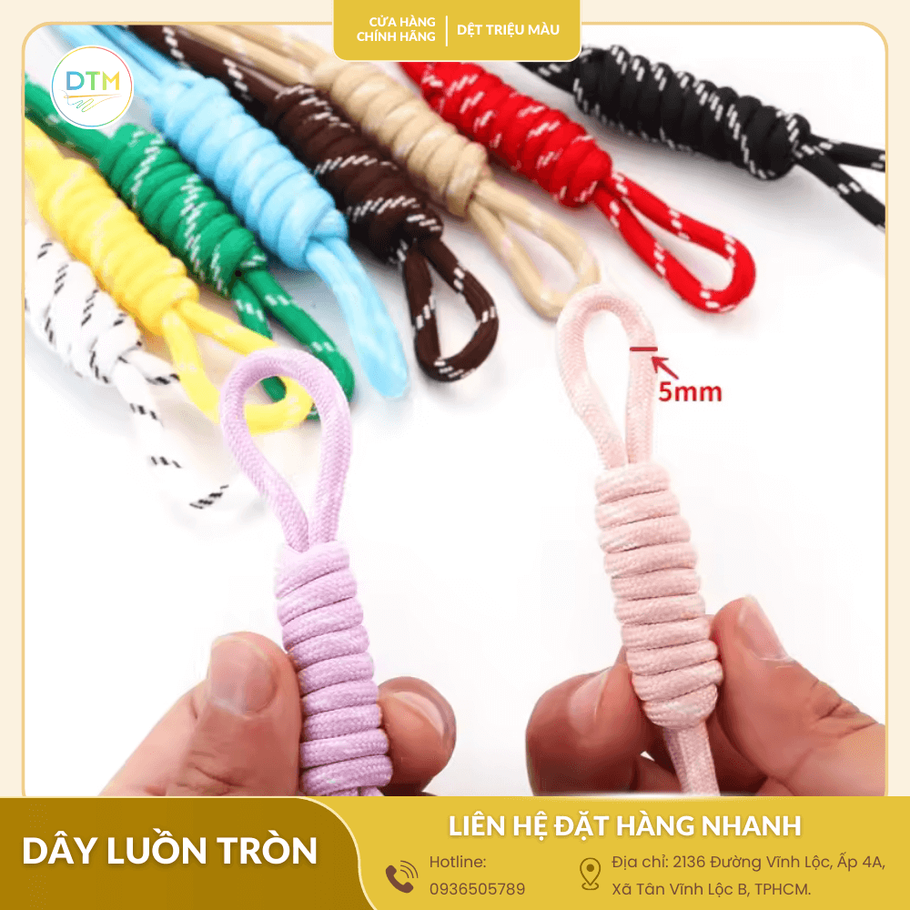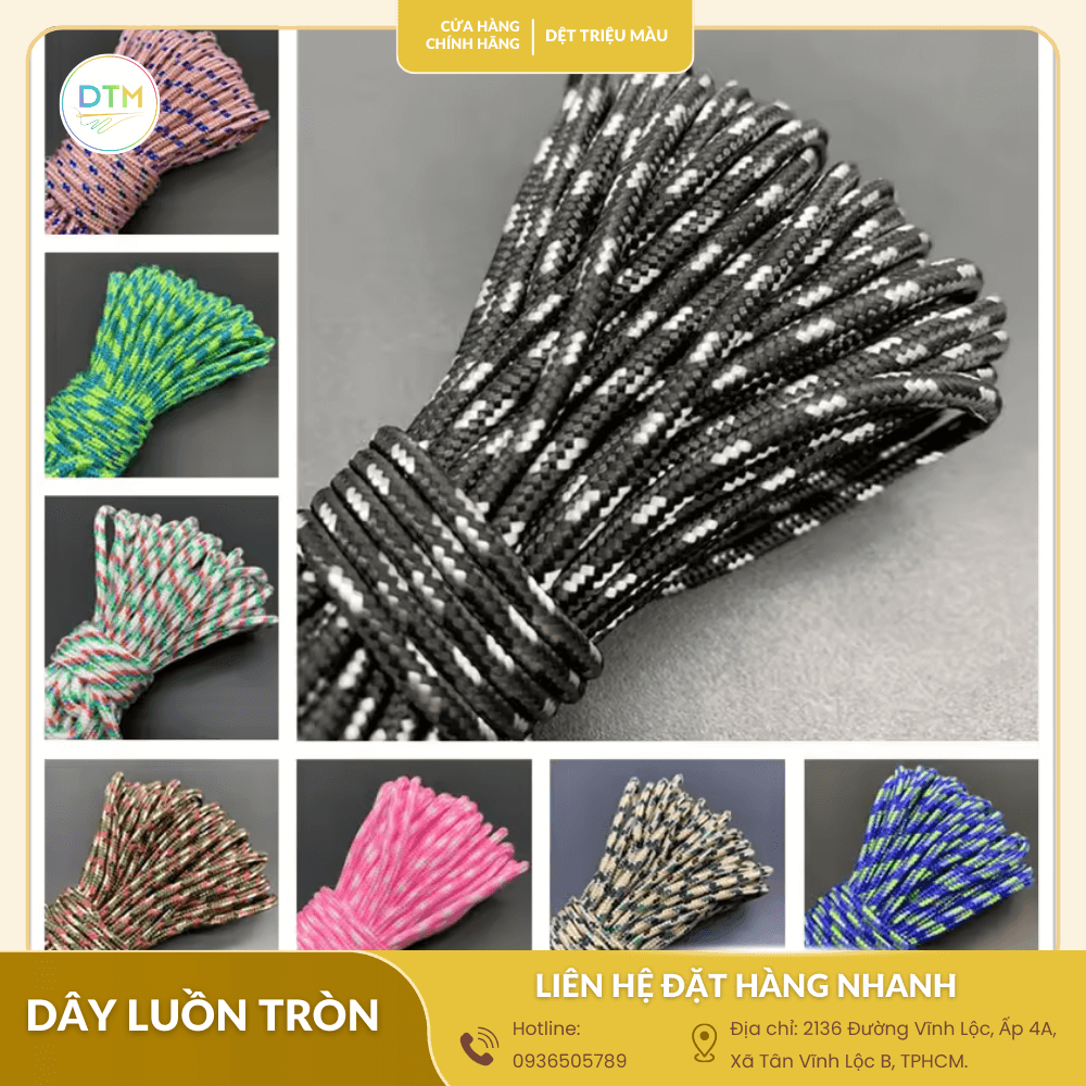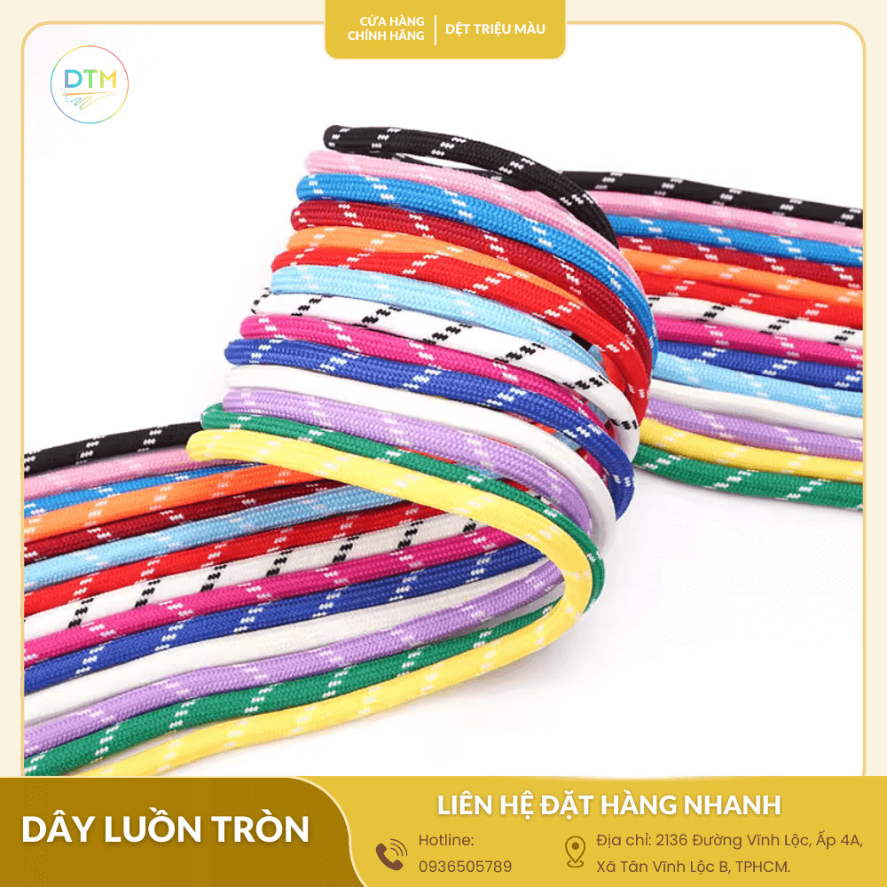 Nếu bạn đang tìm kiếm câu trả lời cho câu hỏi mua dây luồn tròn ở đâu uy tín, Dệt triệu màu chính là đối tác đáng tin cậy mà bạn cần. Với kinh nghiệm nhiều năm trong ngành và lợi thế là xưởng sản xuất trực tiếp, chúng tôi cam kết mang đến cho bạn những sản phẩm dây luồn tròn chất lượng cao, đa dạng mẫu mã với mức giá cạnh tranh nhất thị trường.