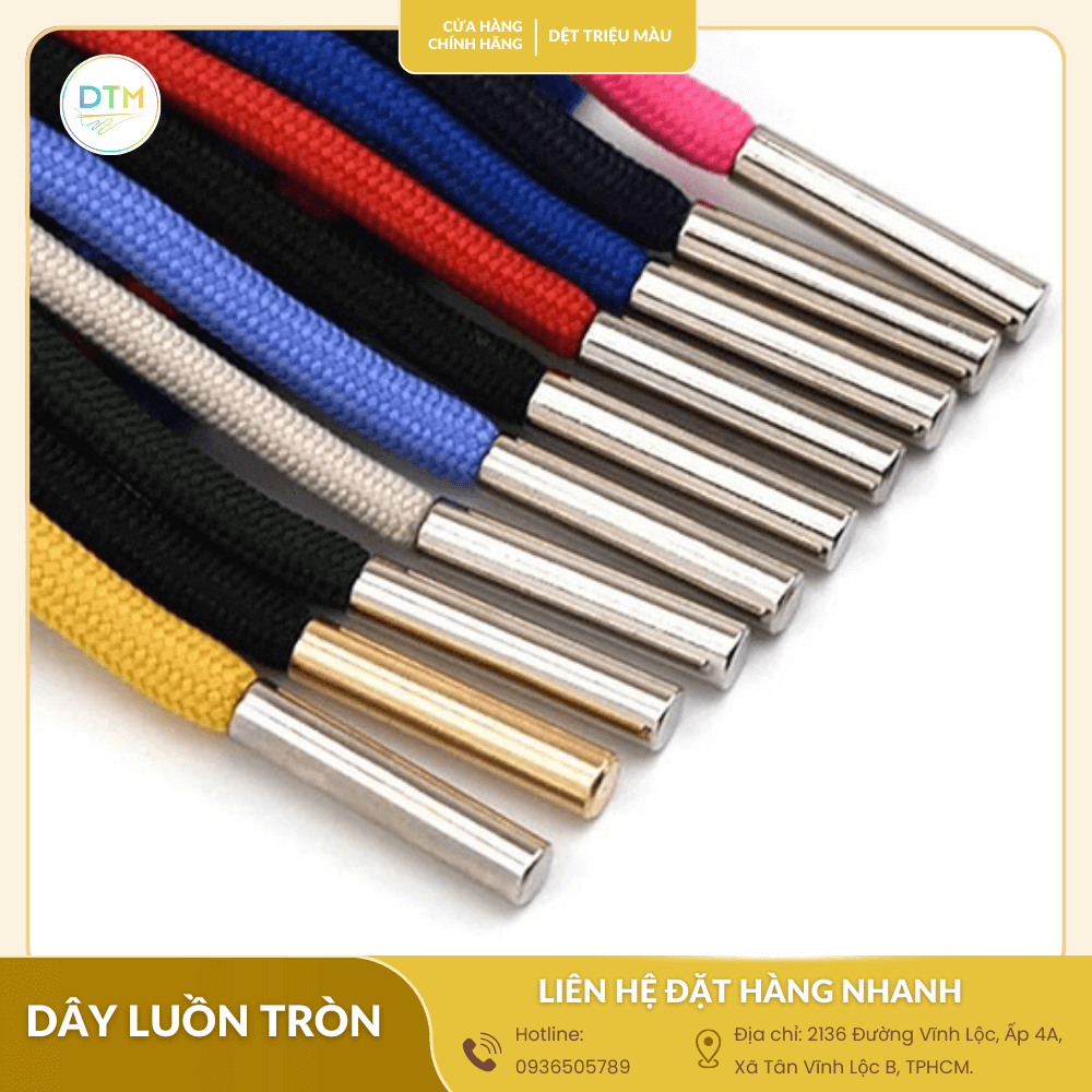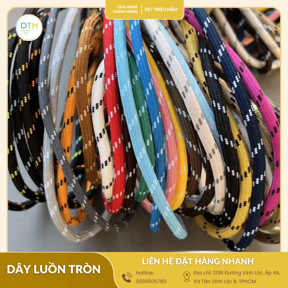 Dây luồn tròn là phụ kiện không thể thiếu trong may mặc, giày dép và balo túi xách. Với ưu điểm bền chắc, đa dạng màu sắc, sản phẩm được sản xuất trực tiếp tại xưởng, cam kết giá sỉ tốt nhất. Bạn đang tìm nguồn cung cấp ổn định, uy tín cho đơn hàng của mình? Hãy tham khảo ngay chi tiết!