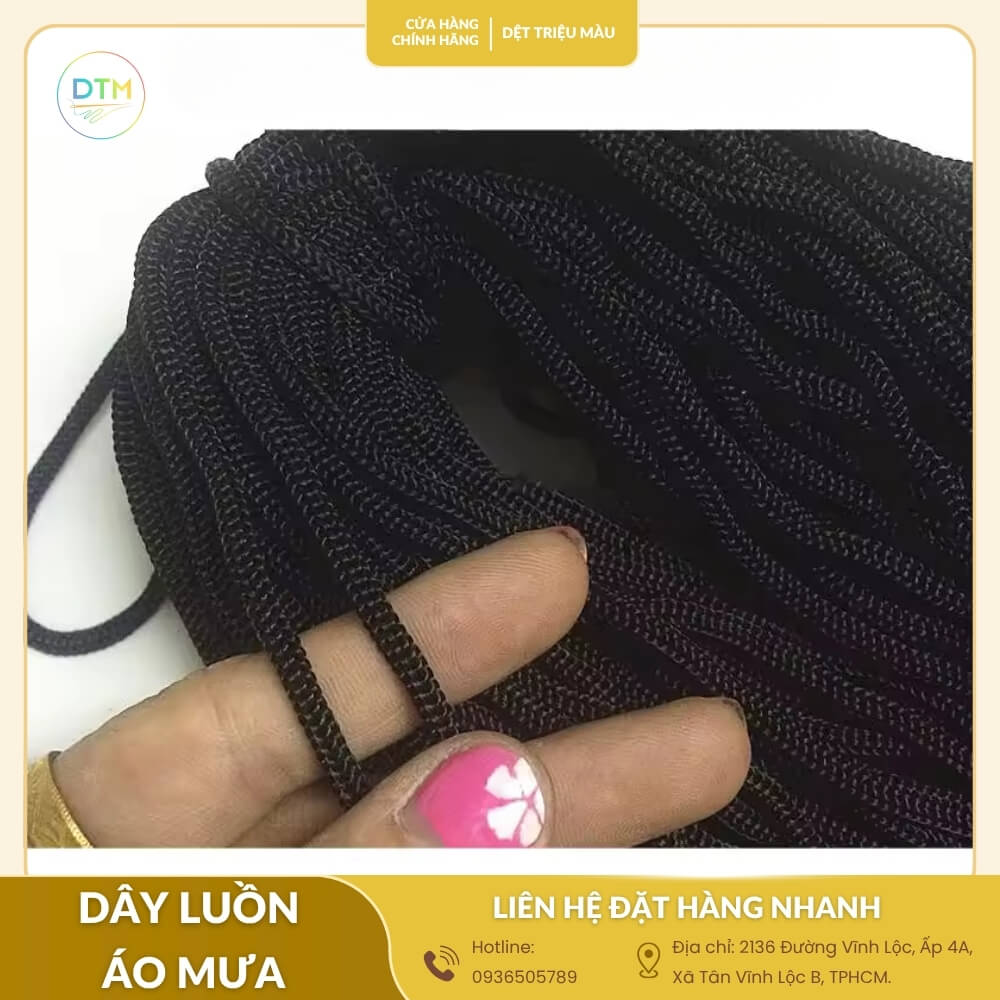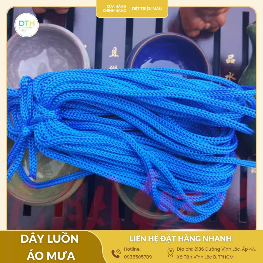 Theo khảo sát thị trường 2024, hơn 70% xưởng sản xuất áo mưa tại Việt Nam ưu tiên sử dụng dây luồn polyester. Nếu bạn đang tìm nguồn cung uy tín, Dệt Triệu Màu hiện cung cấp dây luồn cotton giá sỉ tận xưởng rẻ nhất cho các doanh nghiệp may mặc và nhà phân phối phụ kiện.