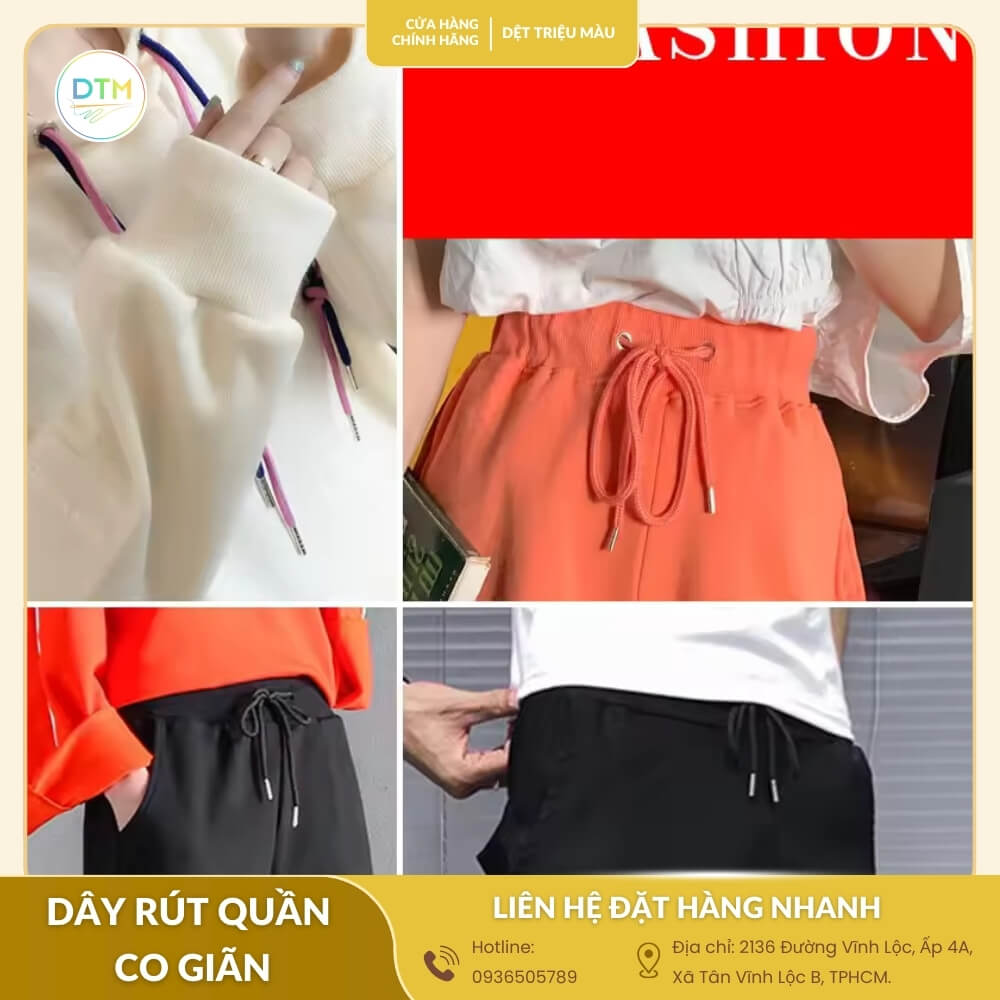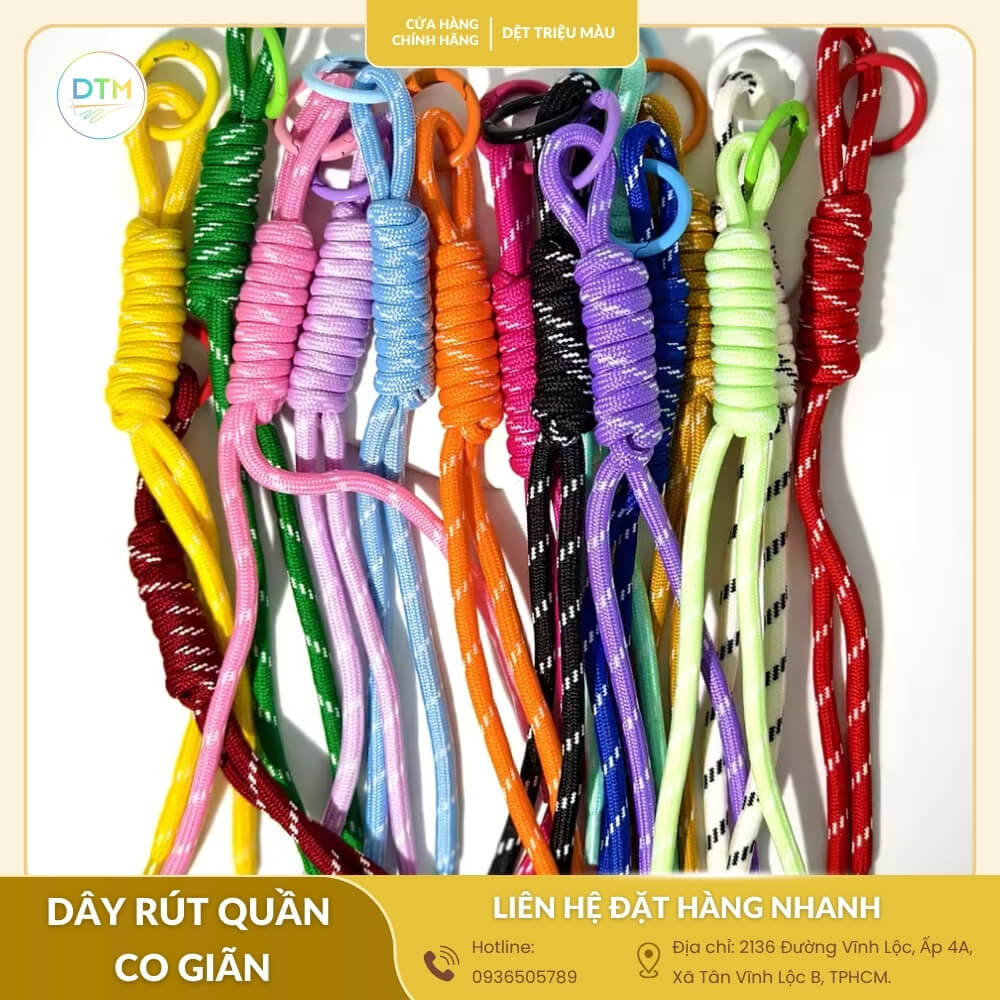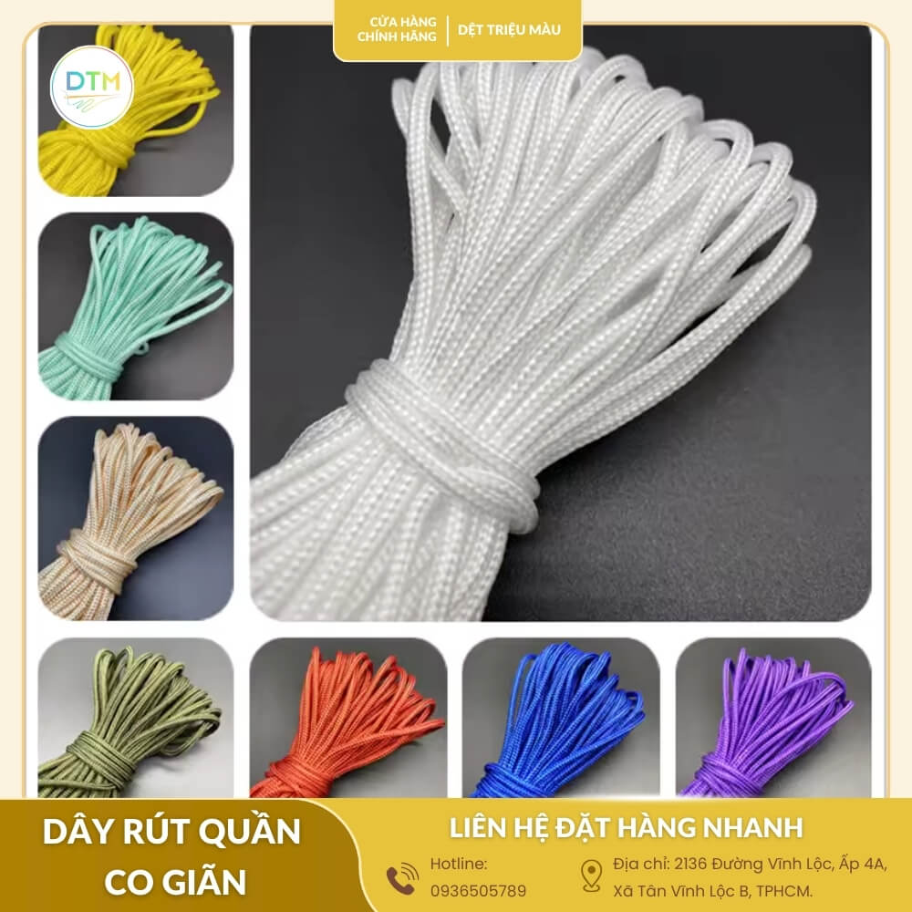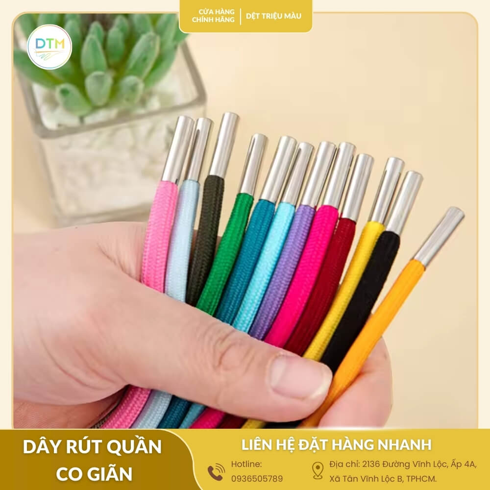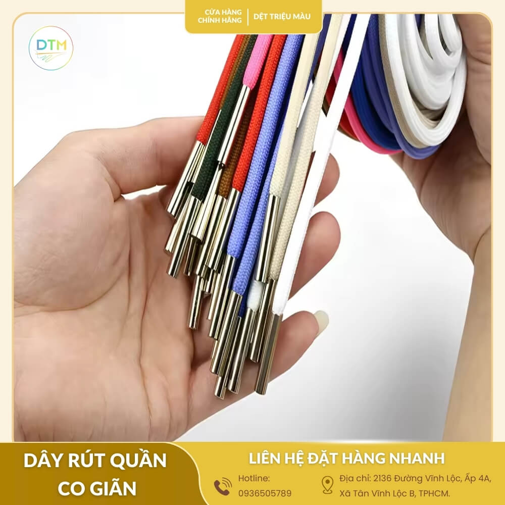 Dây rút quần co giãn không chỉ là phụ kiện nhỏ mà còn quyết định sự tiện lợi và thẩm mỹ cho sản phẩm may mặc. Mua sỉ tận xưởng giúp bạn tiết kiệm chi phí, đảm bảo chất lượng đồng đều và nguồn cung ổn định. Vậy làm thế nào để chọn được loại dây rút phù hợp nhất? Khám phá ngay!