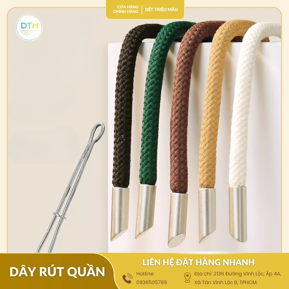 Để sở hữu dây rút quần chất lượng, bền đẹp mà giá cả hợp lý, lựa chọn nơi cung cấp uy tín là yếu tố quan trọng. Hiện nay, bạn có thể mua online với nhiều lựa chọn hoặc đến trực tiếp cửa hàng để kiểm tra chất lượng. Tuy nhiên, nếu muốn yên tâm về nguồn gốc, giá sỉ tận xưởng và dịch vụ chuyên nghiệp, Công ty TNHH SX & TMDV Dệt Triệu Màu chính là địa chỉ đáng tin cậy.