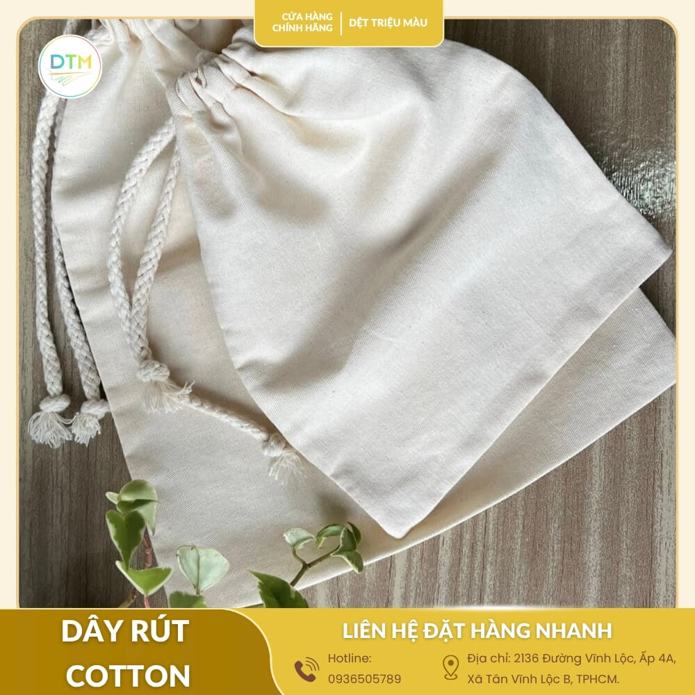 Ngoài ra, cotton có đặc tính dễ nhuộm màu nên mang lại màu sắc tự nhiên và đa dạng. Người dùng có thể chọn dây rút màu sắc phù hợp cho dây rút túi xách, dây rút hộp quà hoặc các sản phẩm handmade khác.