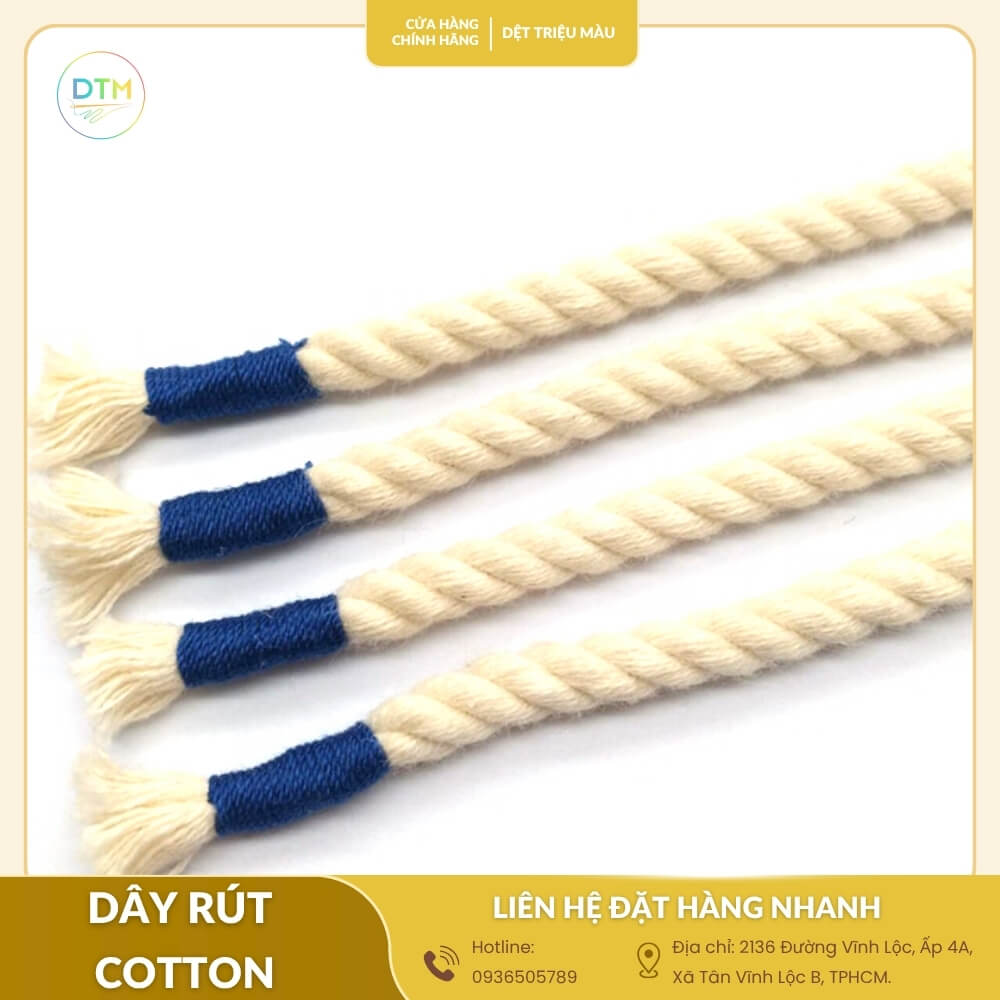 Nếu bạn đang tìm nơi mua dây rút cotton chất lượng cao, giá tốt tại TP.HCM hay Hà Nội, có thể tham khảo thêm các dòng dây tại Dệt Triệu Màu – Sản phẩm hoặc xem chi tiết về dây luồn cotton giá sỉ tận xưởng để lựa chọn loại phù hợp với nhu cầu của mình.