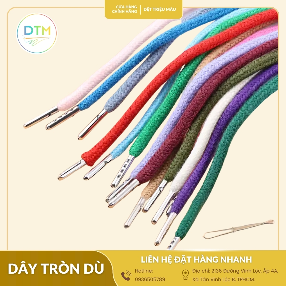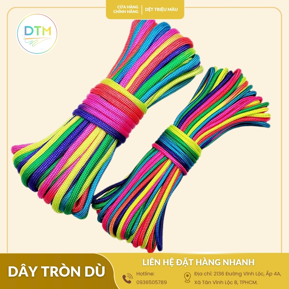Dệt Triệu Màu mang đến chất liệu bền bỉ, đạt chuẩn quốc tế, không phai màu, không xù lông sau thời gian dài sử dụng. Sản phẩm có màu sắc phong phú, nhiều đường kính, đáp ứng nhu cầu từ thời trang đến phụ kiện outdoor. Đặc biệt, giá xưởng cạnh tranh giúp bạn tiết kiệm chi phí mà vẫn đảm bảo chất lượng. Dệt Triệu Màu còn nhận gia công theo yêu cầu, in logo, sản xuất số lượng lớn, phù hợp cho cá nhân, cửa hàng hay doanh nghiệp cần đặt riêng.